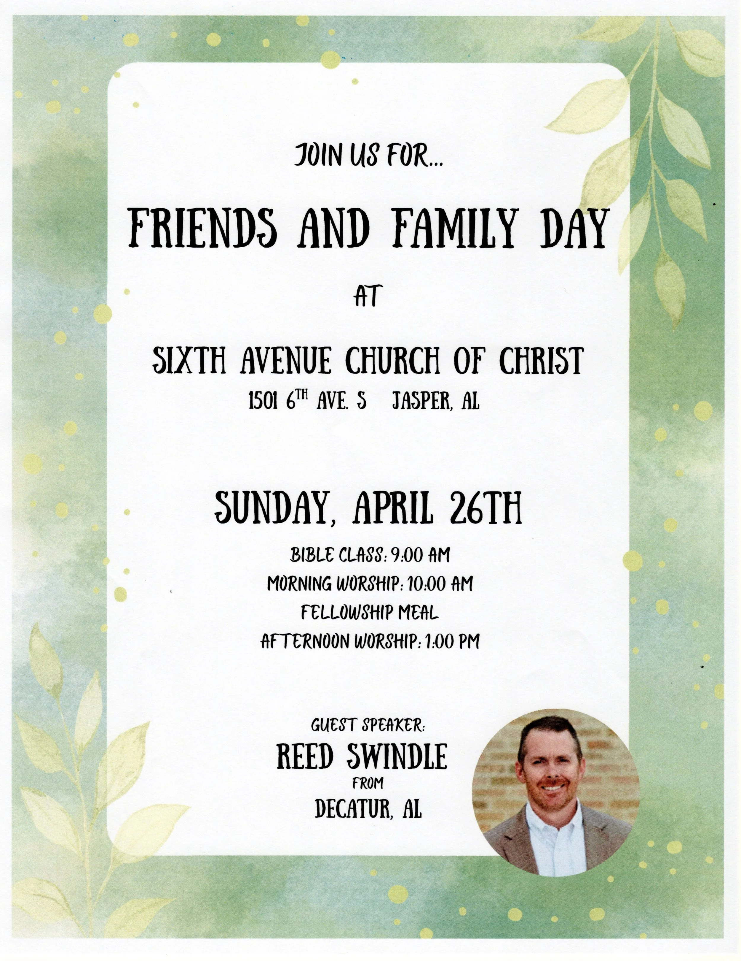 Sixth Avenue Church of Christ Come Worship With Us What we believe… Find out more about the churches of Christ Our Elders A free Bible study periodical Our Ministers Subscribe to our Youtube channel Benevolence Upcoming Activities